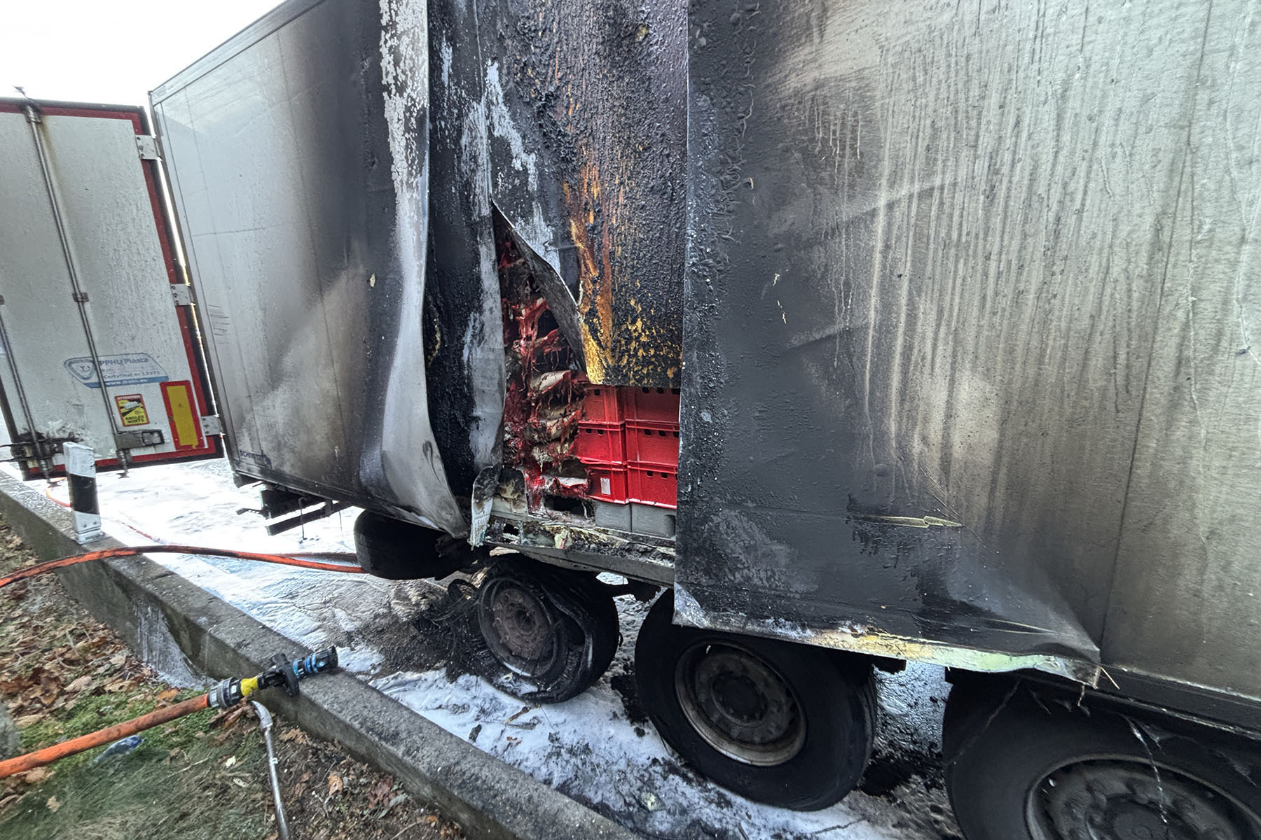 BAB4 bei Dresden: Reifenschaden, Lkw-Brand: Gesamte Ladung vernichtet