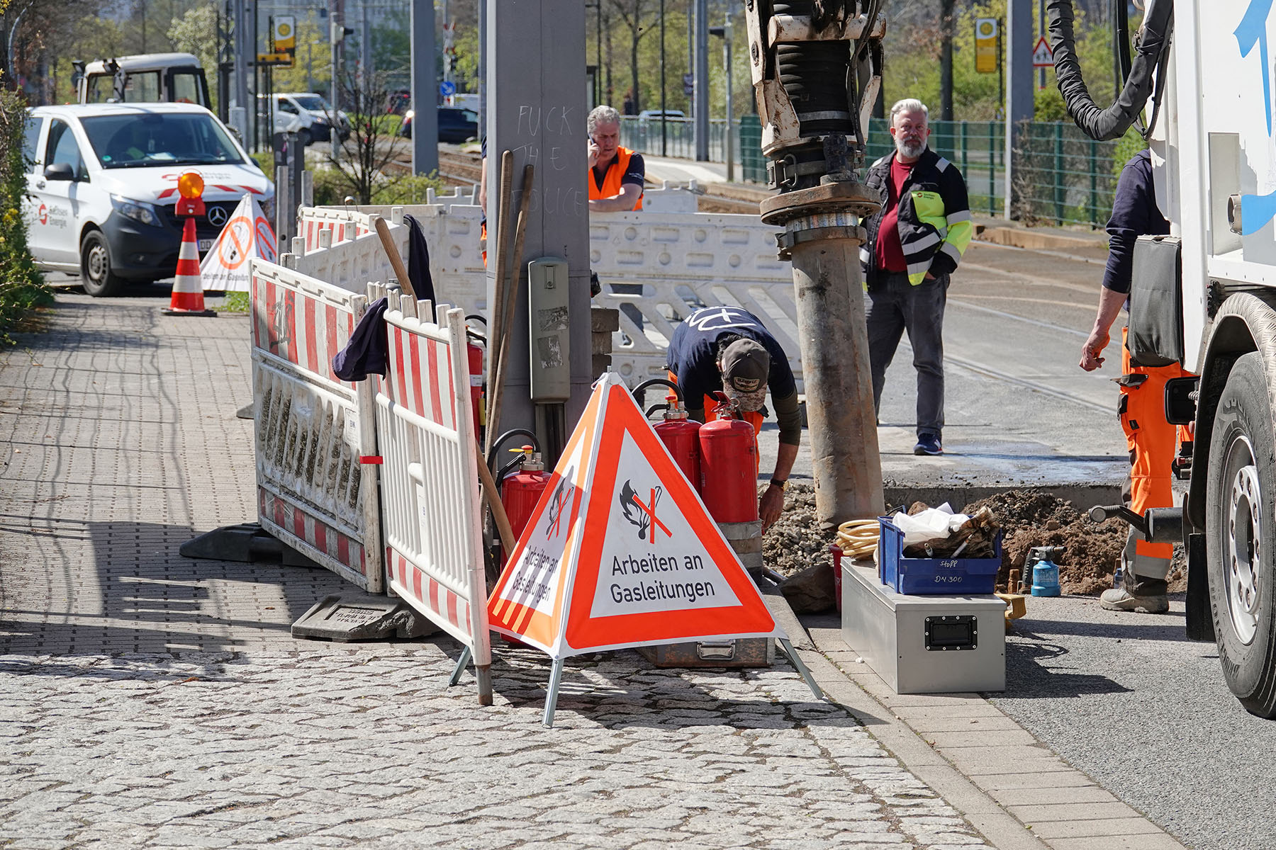 Dresden: Gashavarie - Straße stundenlang dicht, Tram-Verkehr unterbrochen