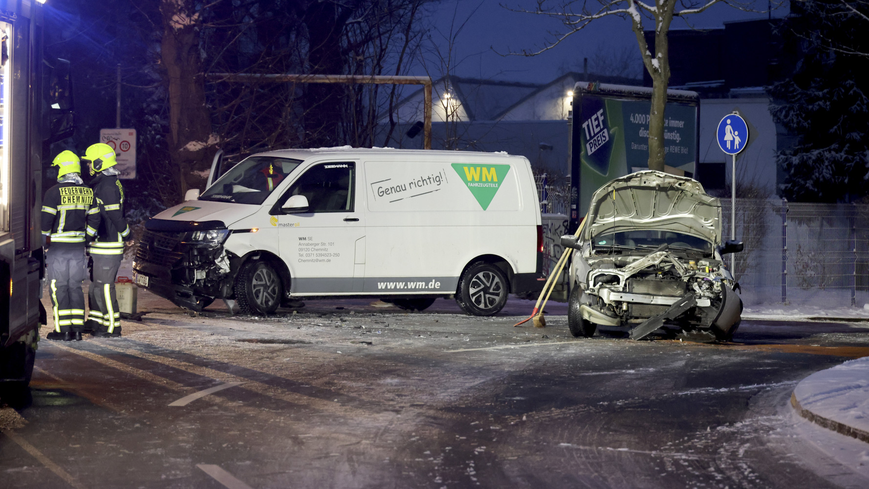 Chemnitz: Tückische Glätte - Opel rutscht frontal gegen VW-Transporter, zwei Verletzte