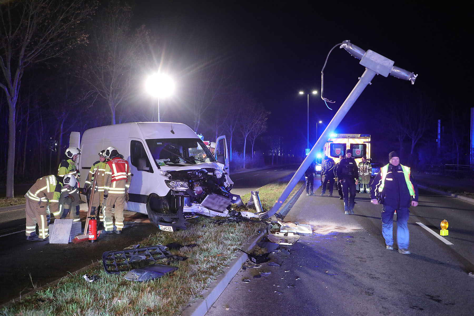 Dresden: Transporter gegen Lichtmast - Alkoholisierter Fahrer verletzt