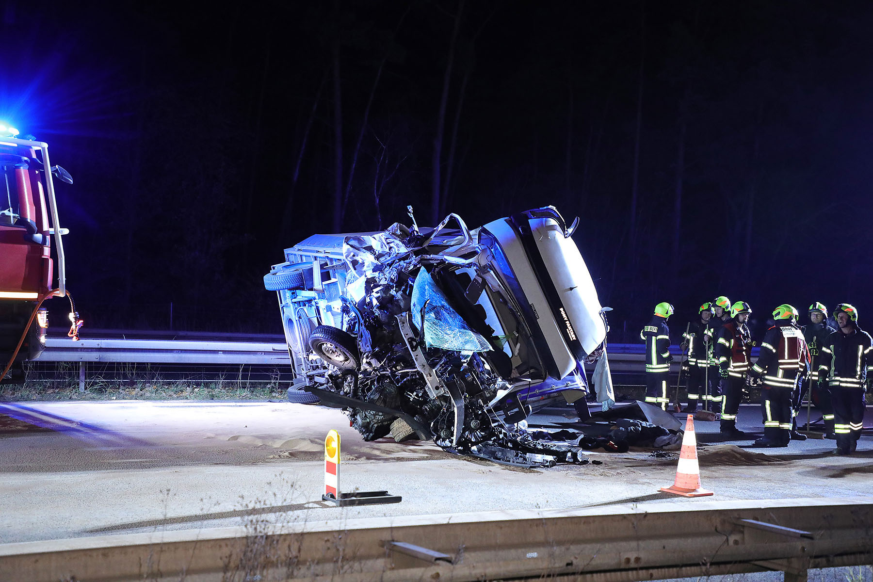 BAB13 bei Radeburg: Kleinlaster kracht auf Tieflader - Klein-Lkw-Fahrer schwer verletzt