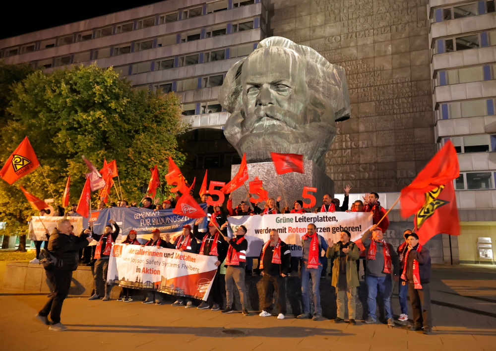 Fotos: HärtelPRESS Demo von etwa 100 Vertrauensleuten am Karl-Marx-Monument Am Wochenende trafen sich rund 100 Vertrauensleute der IG Metall Chemnitz, um gemeinsam Wissen aufzufrischen, zu diskutieren und Pläne für die Zukunft zu schmieden. Höhepunkt des Treffens war eine Aktion am Samstagabend: Die Metaller setzten um 20.00 Uhr ein starkes Zeichen für die Einführung der (...weiterlesen)