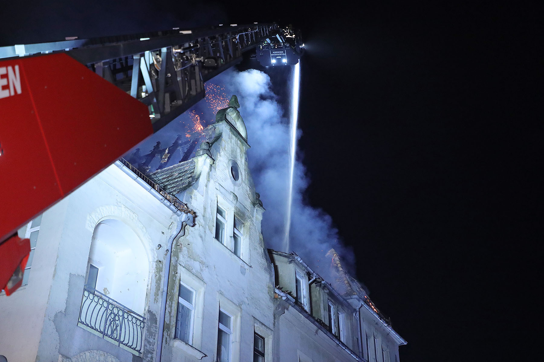 Meißen: Leer stehendes Gebäude in Flammen