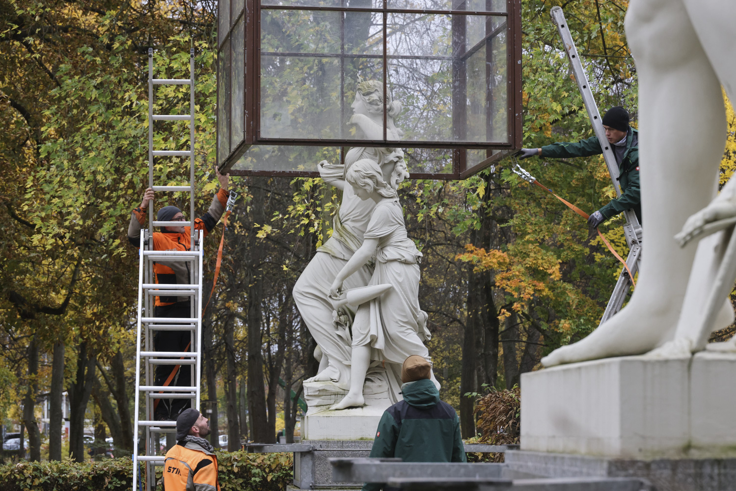 Fotos: Jan Härtel Schutzhauben aus Plexiglas schützen die Sandsteinplastiken Der Winter steht vor der Tür. Untrügliches Zeichen ist die jährliche Einhausung der vier berühmten Schillingschen Figuren im Chemnitzer Schlossteichgelände. Am Dienstag wurde den Sandsteinplastiken "Vier Tageszeiten" ihre "Wintermäntel" angelegt. In den kommenden Monaten schützen Plexiglas-Hauben die (...weiterlesen)