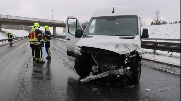 Chemnitz: Tückische Glätte - Sprinter kracht gegen Leitplanke, Fahrer verletzt