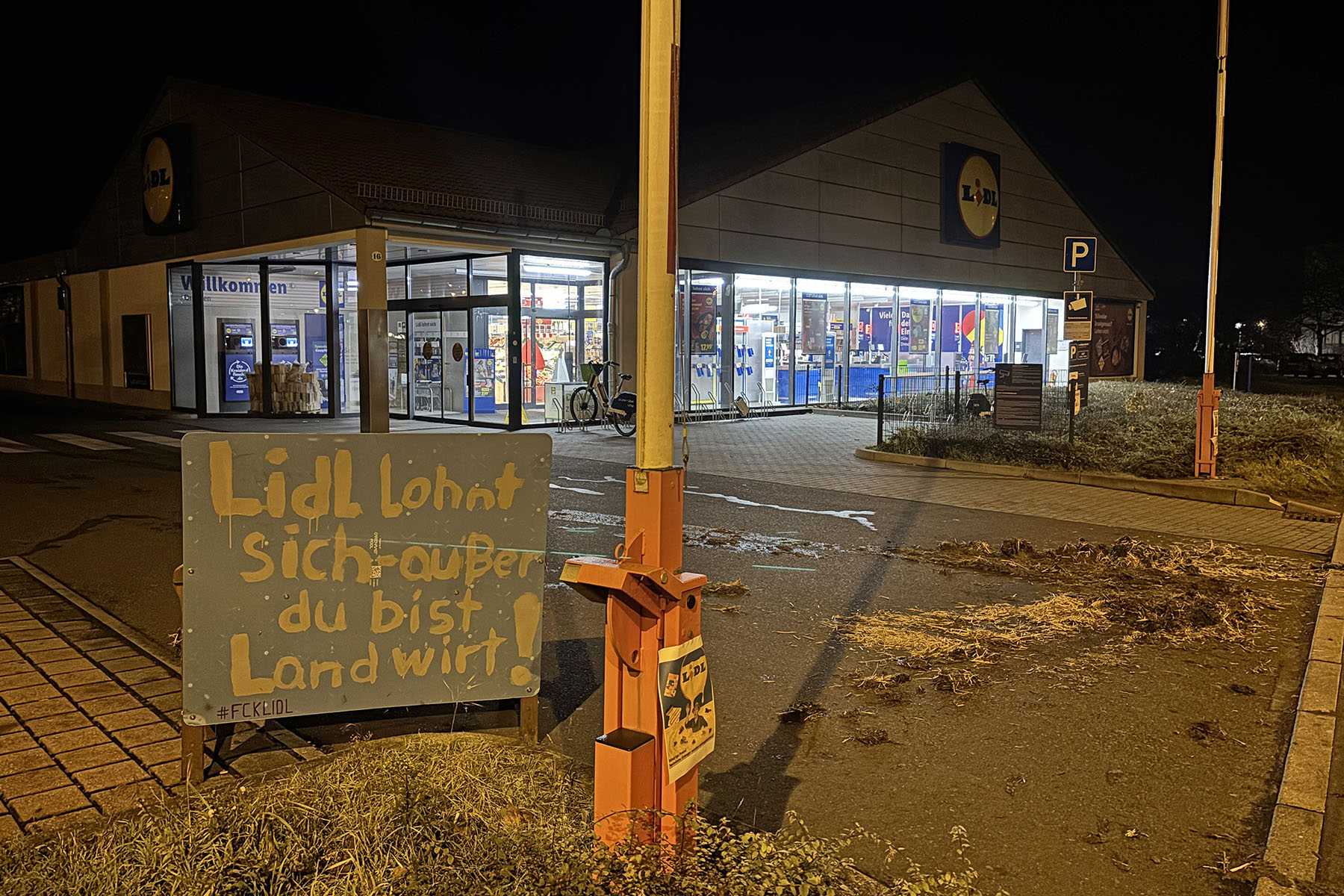 Dresden: Nächtliche Protestaktion - Großer Misthaufen vor Lidl-Markt abgekippt