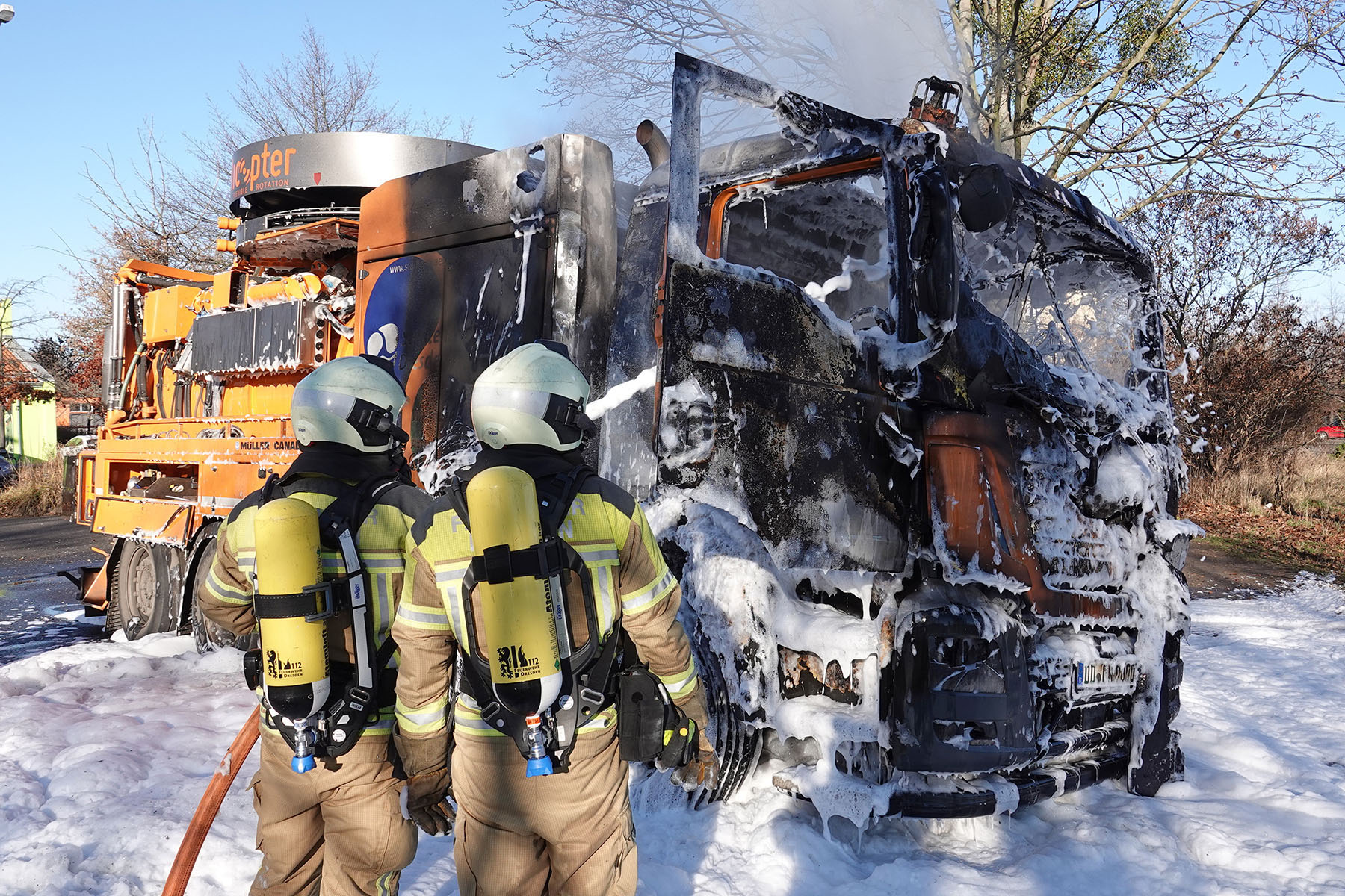 Dresden: Spülfahrzeug der Stadtentwässerung total ausgebrannt