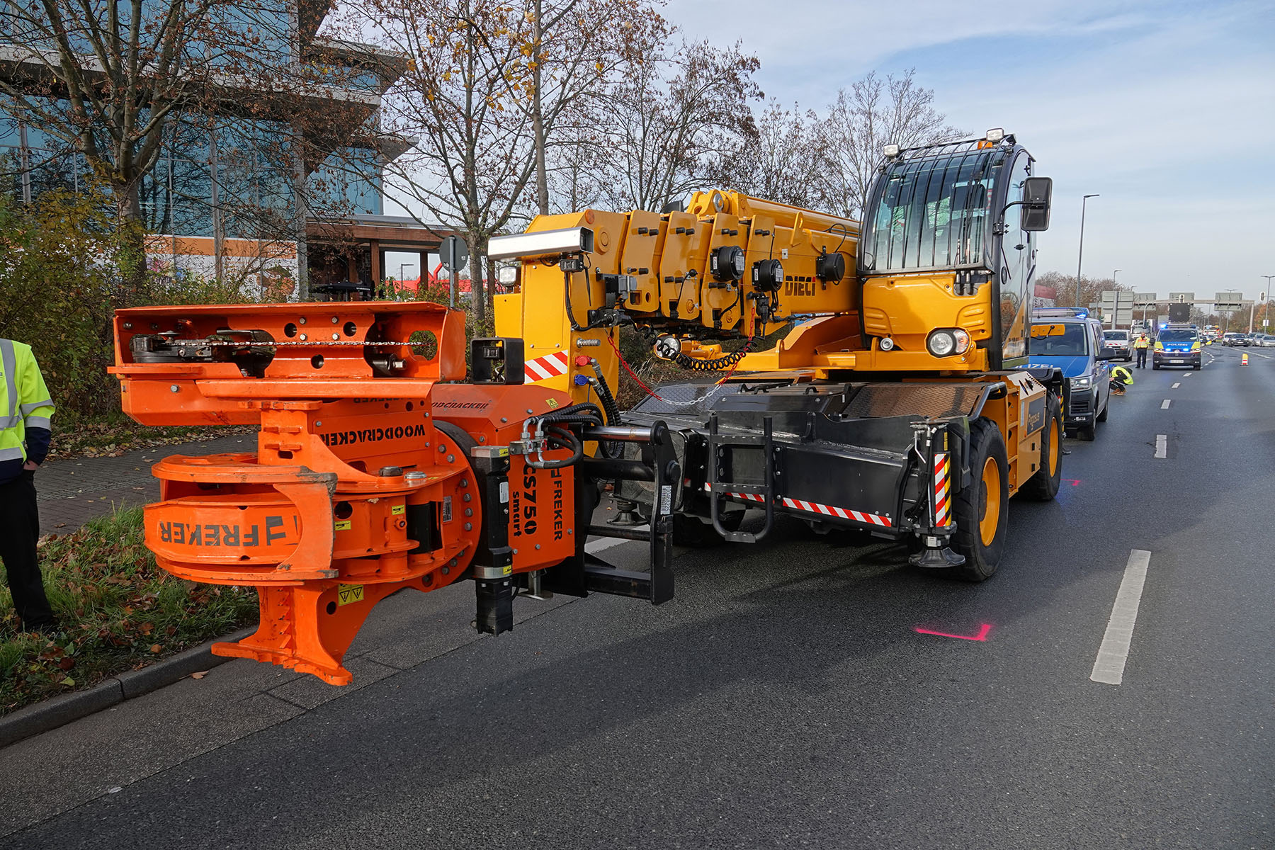 Dresden: Radlader erfasst Frau: Schwerstverletzt