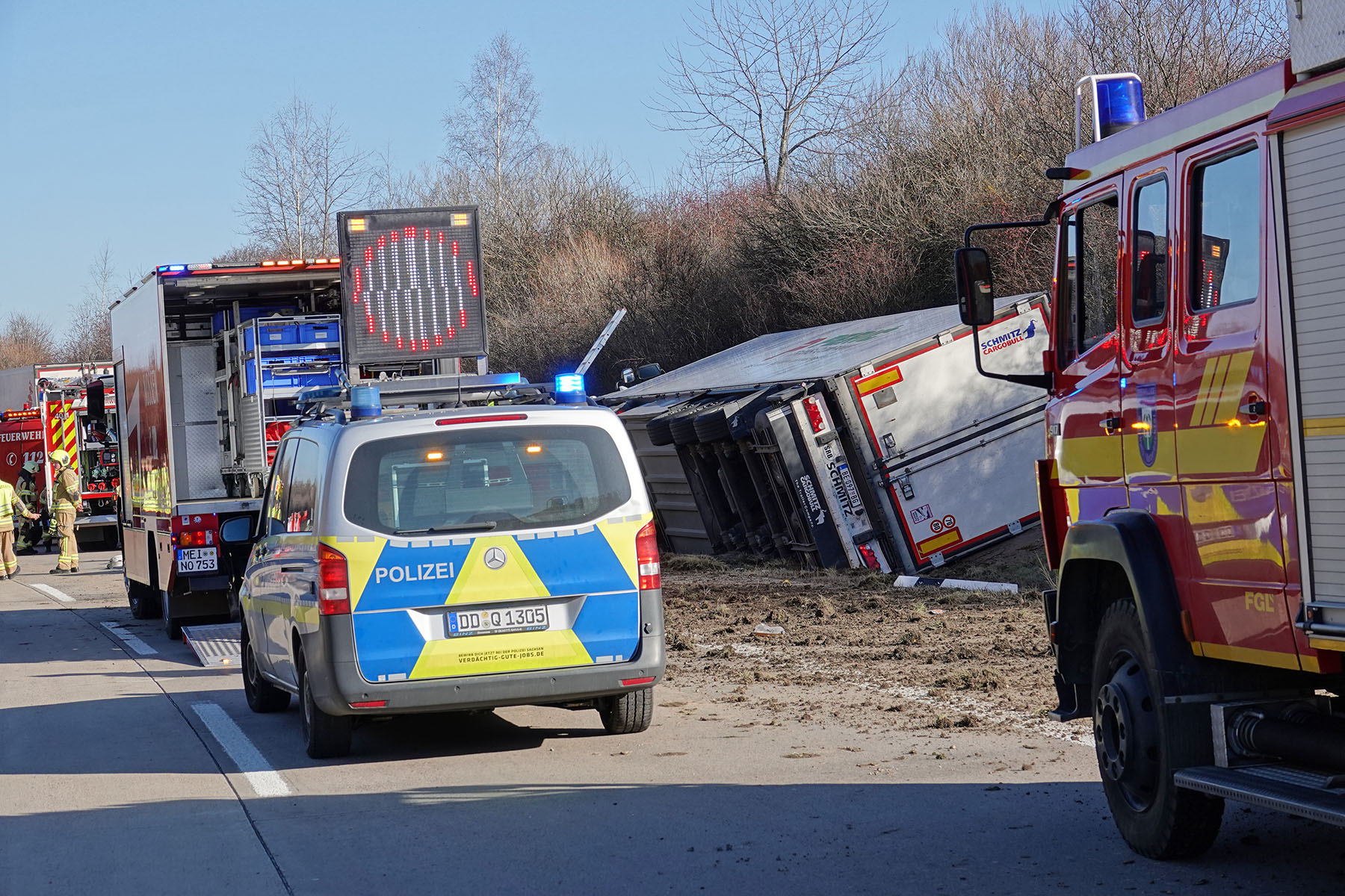 BAB14 bei Nossen: Lastzug mit Kokosnüssen und Ananas umgekippt - Trucker verletzt