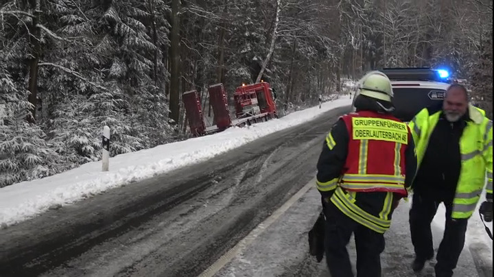 Falkenstein: Tückische Glätte - Lkw stürzt um, Fahrer schwer verletzt