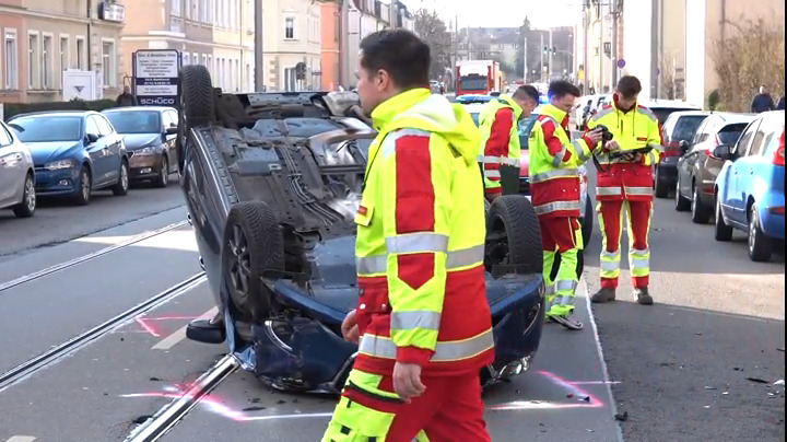 Dresden: Mazda knallt gegen VW und überschlägt sich - Fahrer verletzt