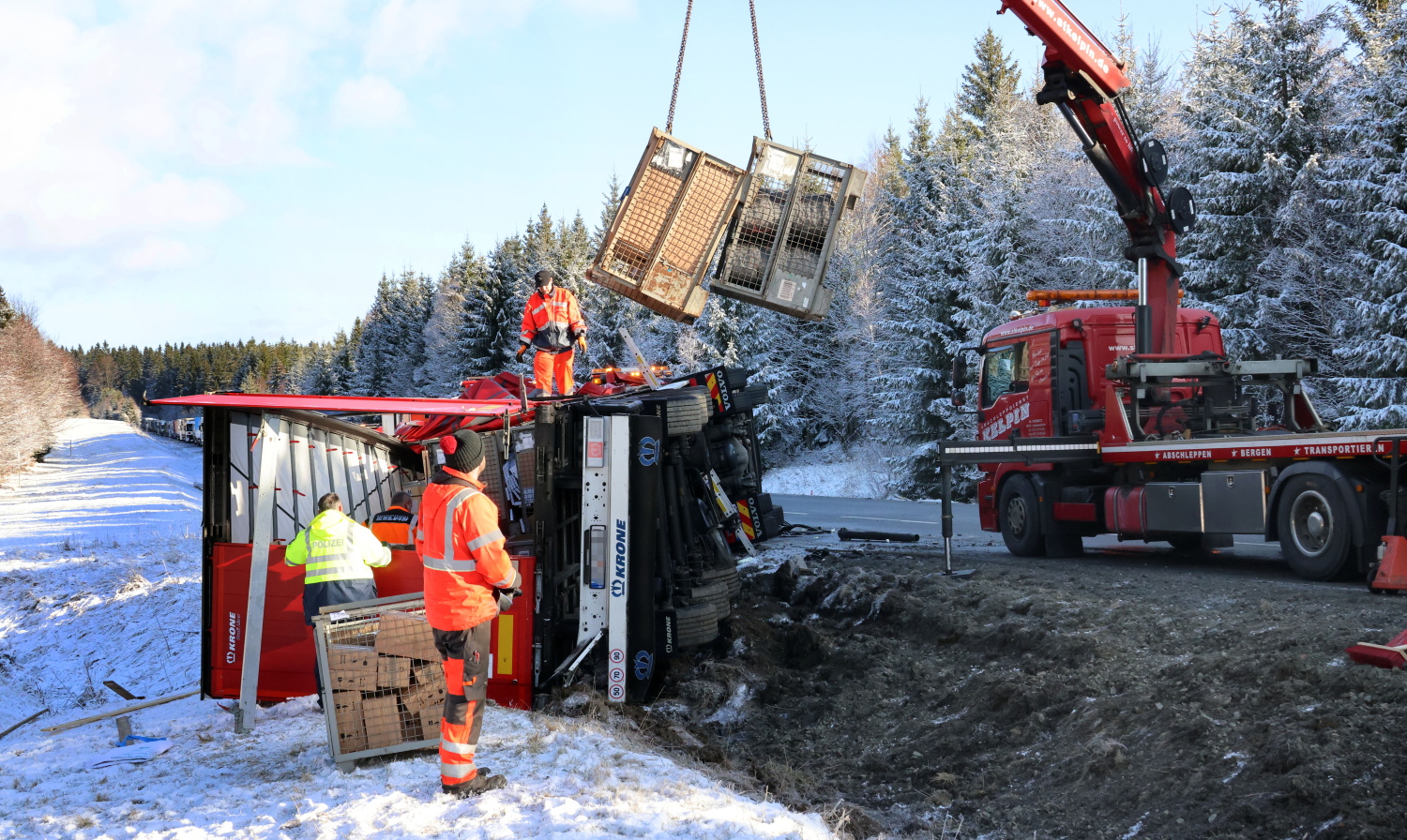 Reitzenhain: Winter-Comeback - Lastzug überschlagen, Fahrer schwer verletzt