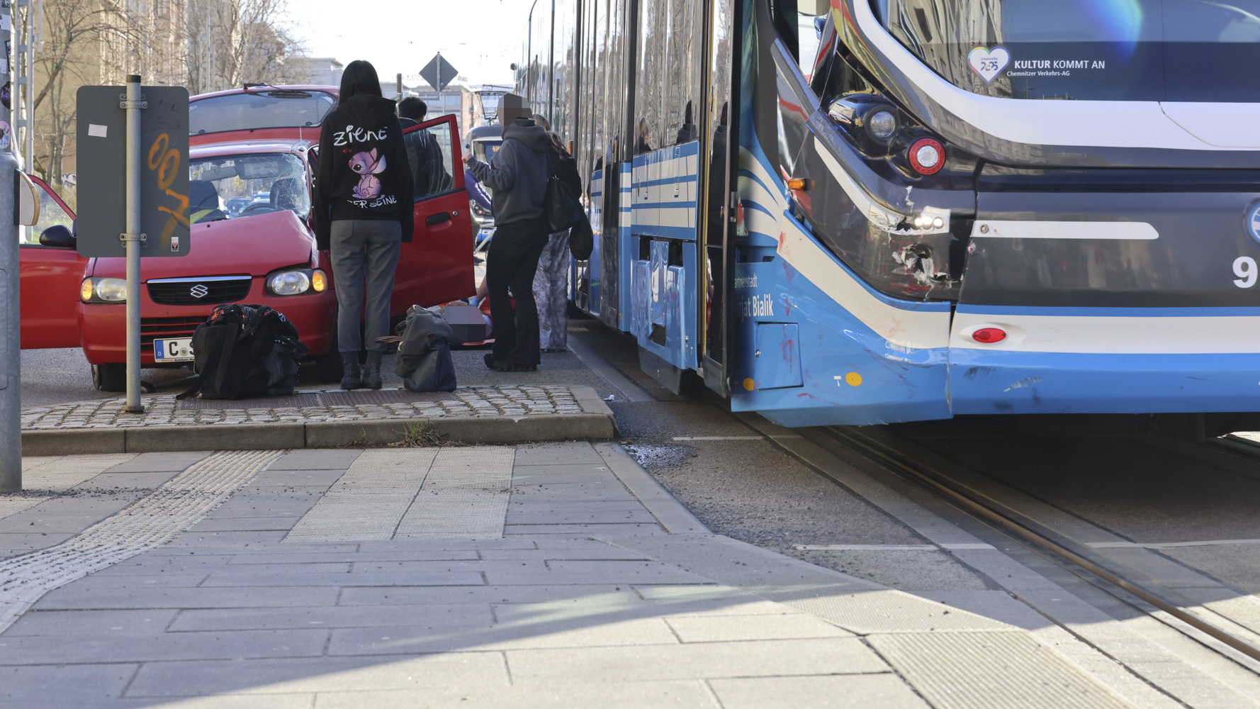 Chemnitz: Suzuki gegen Straßenbahn - Pkw-Fahrer schwer verletzt